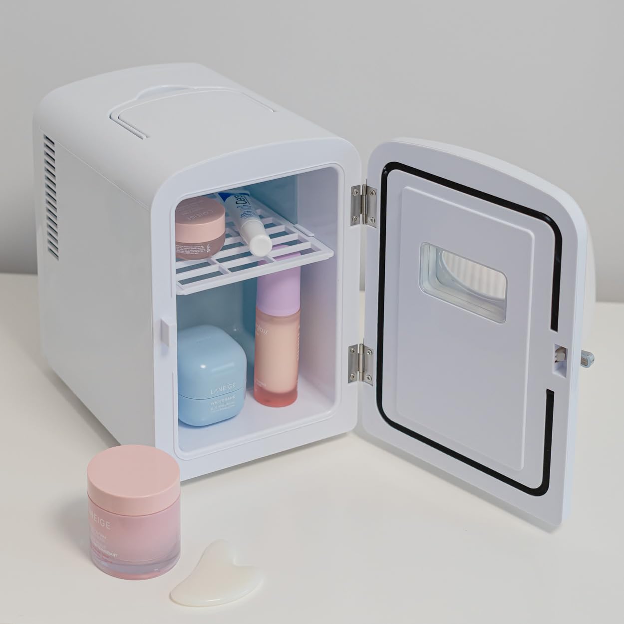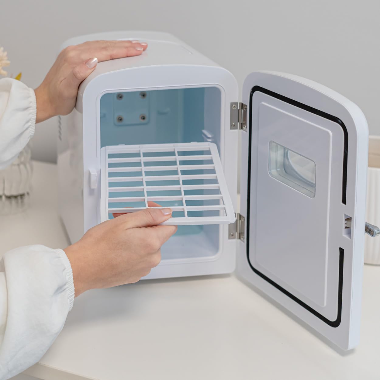 - KAPAZITÄT: Der Mini-Kühlschrank hat ein Fassungsvermögen von bis zu 4 l. Im Kühlschrank können Sie kleine Produkte unterschiedlicher Größe aufbewahren, sei es Kosmetik, Lebensmittel oder Getränke.