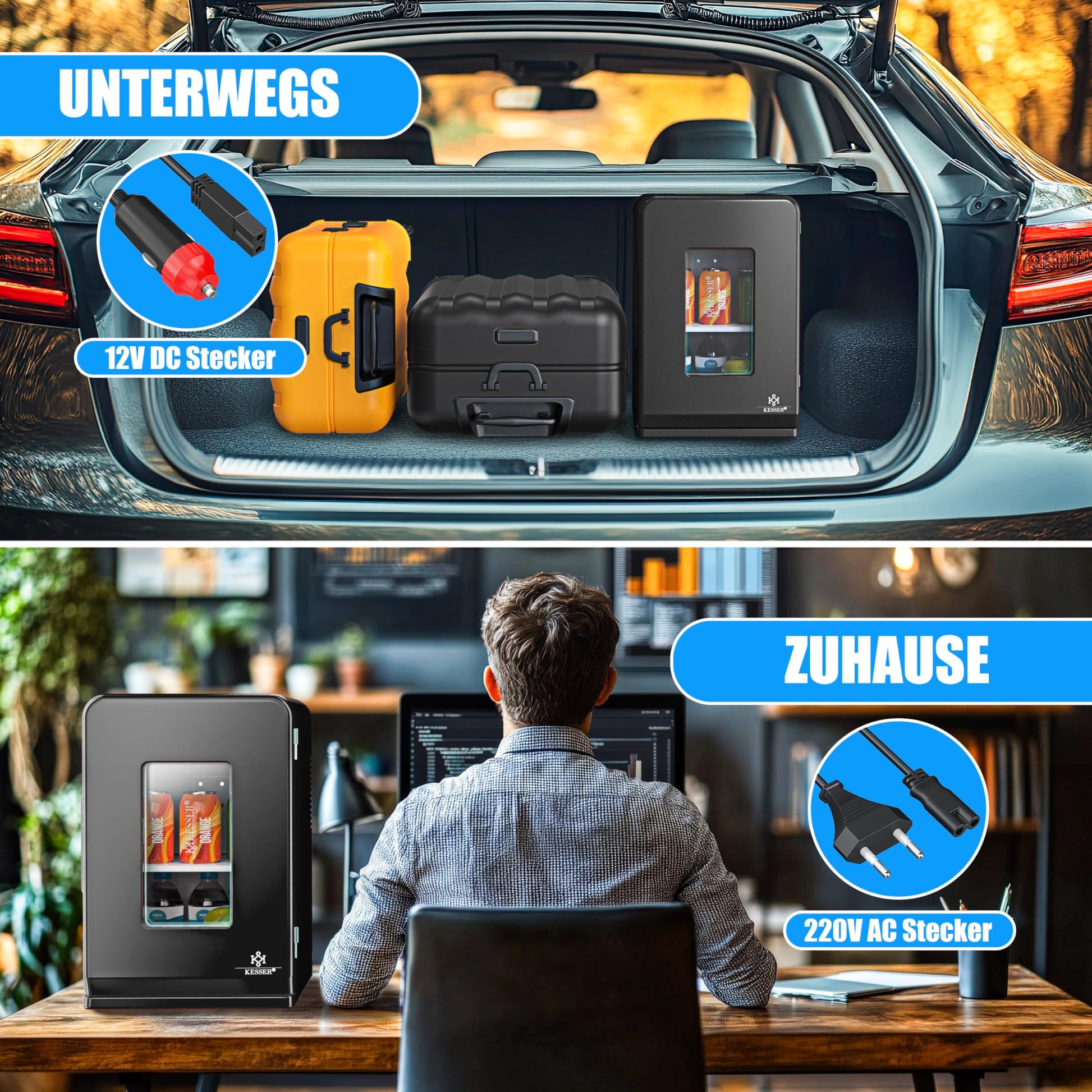 KESSER® 2in1 Mini Kühlschrank Kühlbox 15 Liter Kühl und Heizfunktion Tragbarer AC DC 220-240V/12V Steckdose und Zigarettenanzünder Warmhaltebox Thermobox Auto Büros Zimmer Camping Garten Schwarz