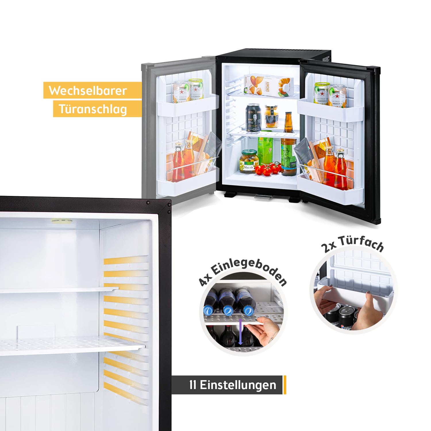 - LAUTLOS & EFFIZIENT: Der Minikühlschrank arbeitet dank seines thermoelektrischen Kühlsystems vollkommen geräuschlos (22 dB), ideal für Schlafräume, Büros oder Hotels. So bleibt der Raum ruhig und Ihre Lebensmittel kühl