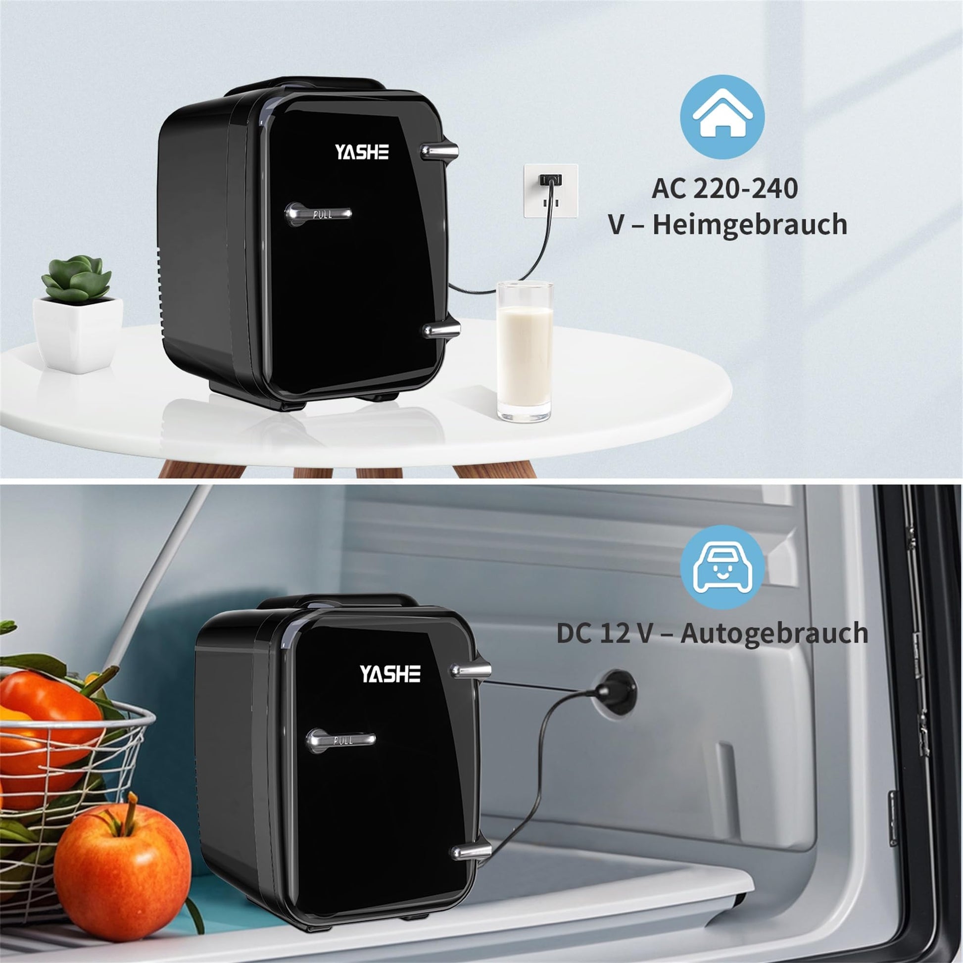 YASHE Mini Kühlschrank, 4 Liter Mini-Kühlschränke für Kosmetik, Getränke, 220V AC/ 12V DC Thermoelektrische Kühlung und Erwärmung, Kleiner Kühlschrank für Schlafzimmer, Büro, Wohnheim, Auto (Schwarz)